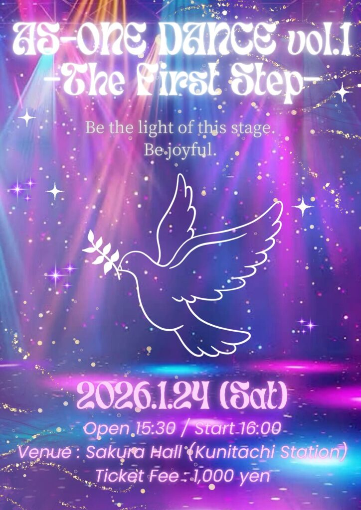 ✨発表会開催のお知らせ✨ AS-ONE DANCE STUDIO 初の発表会“The First Step” を開催します🕊💫 2026年1月24日(土)国立駅 […]